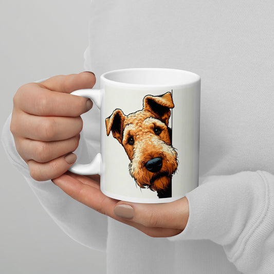 White glossy mug, Airedale Terrier
