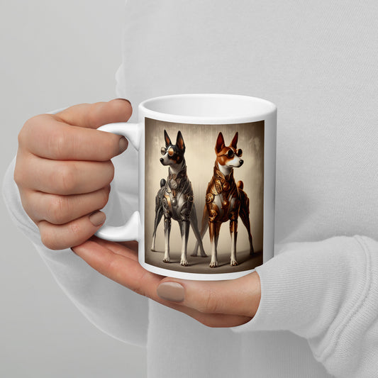 White glossy mug, Basenji, steampunk