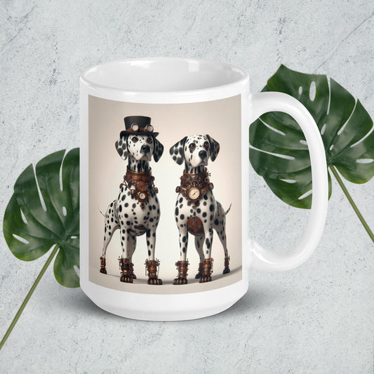 White glossy mug, Dalmatian, steampunk #2