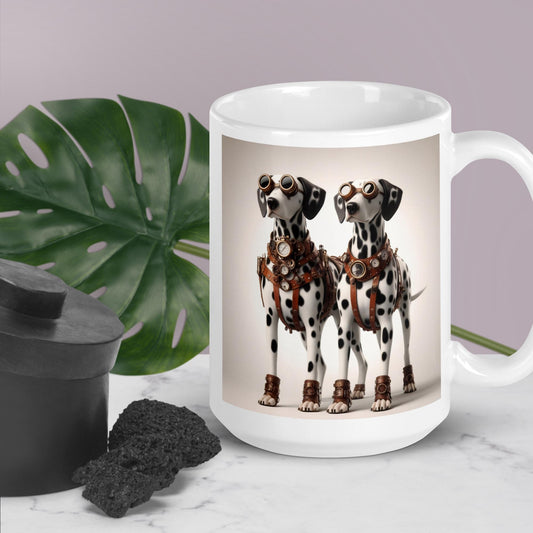 White glossy mug, Dalmatian, steampunk #1