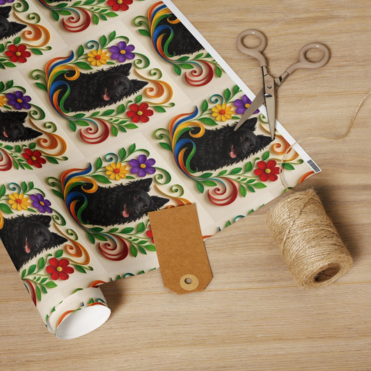 Wrapping paper roll, Mudi (black), floral